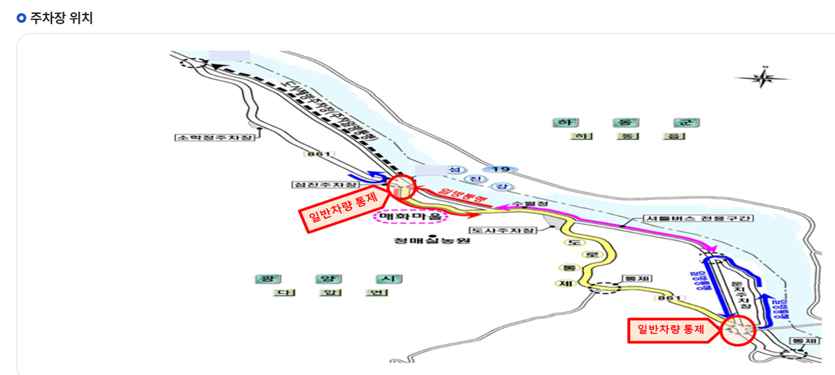 - 둔치 주차장 ~ 매화축제 행사장(첫 출발시간 6:00 / 마지막 출발 시간 17:00)