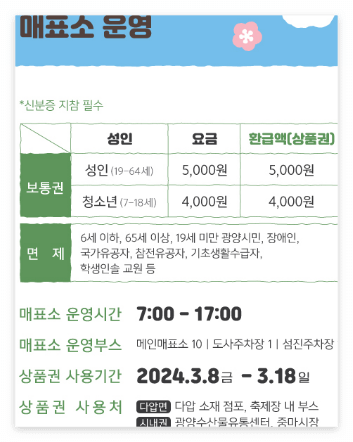 운행기간: 2024.03.08(금) ~ 03.17(10일간)